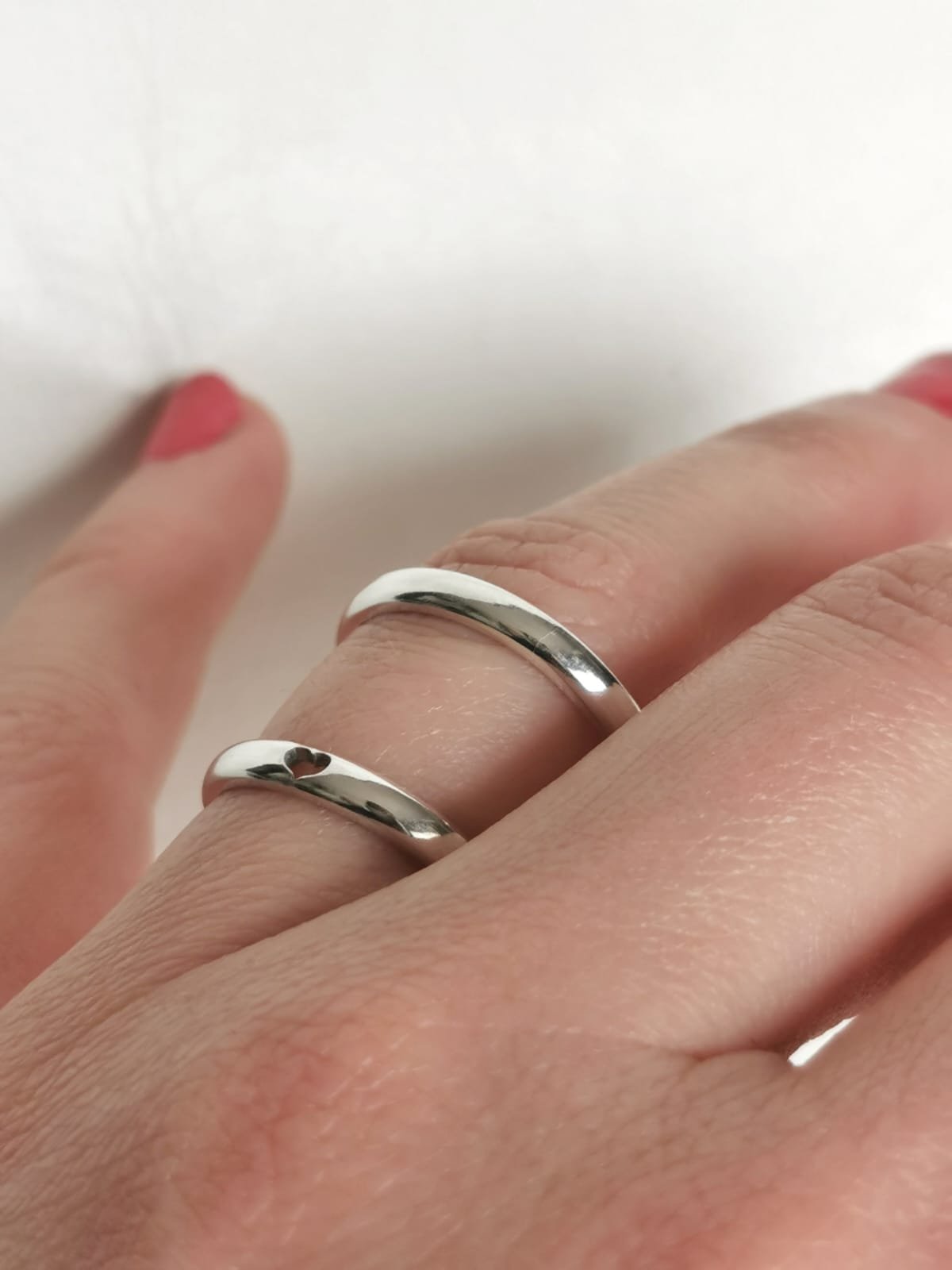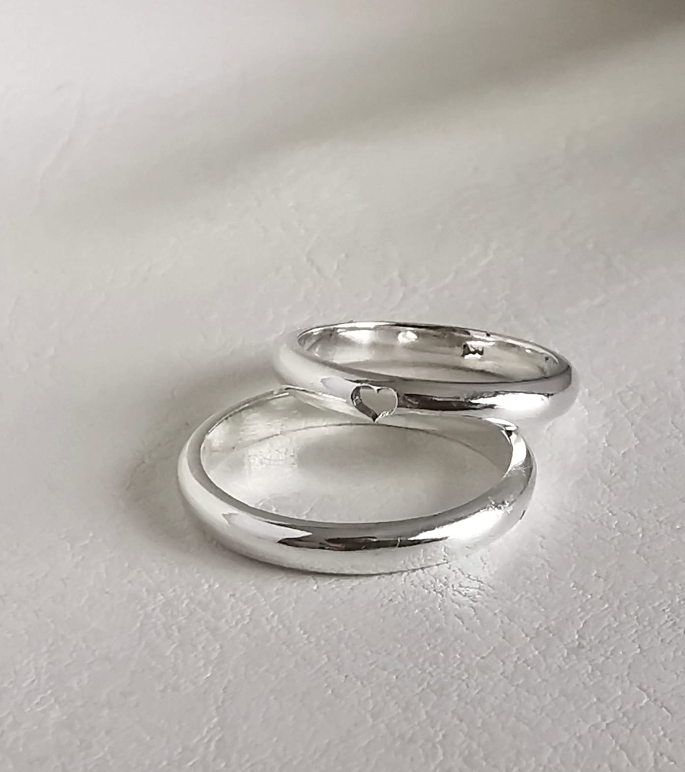 Celebra tu amor con estos anillos de plata ley 950, diseñados con un delicado detalle de corazón que simboliza la unión perfecta. Su acabado brillante y su diseño elegante los convierten en la opción ideal para parejas que buscan una joya única y significativa.